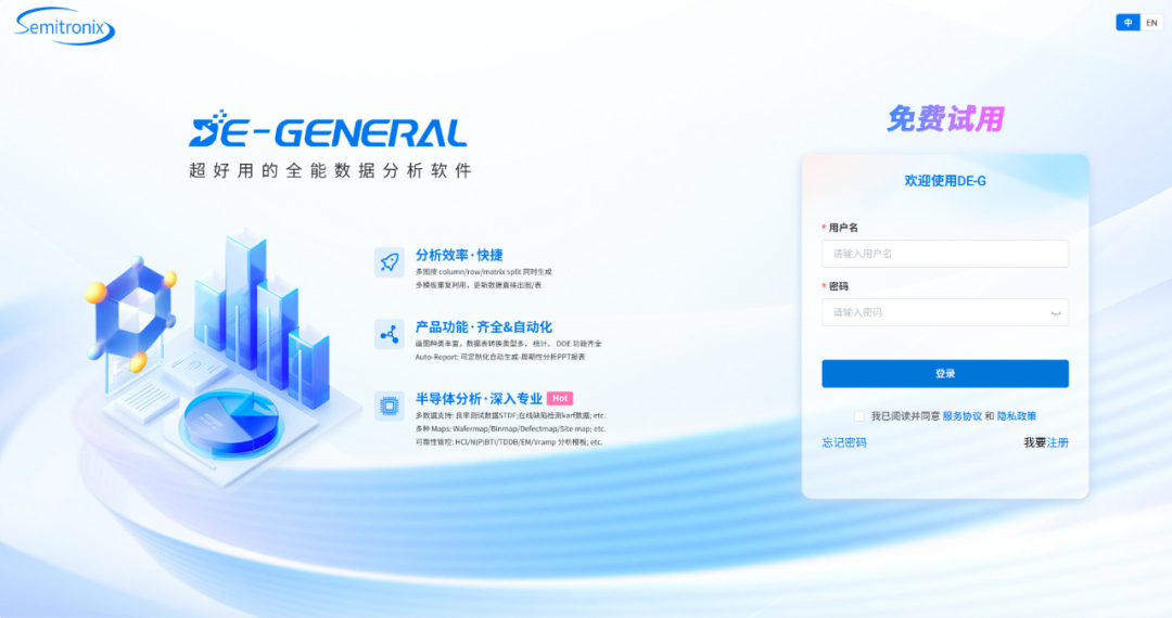 2025年8月5日,国内半导体软件领军企业广立微(301095)自主研发的通用型统计分析软件DE-GENERAL(DE-G)云端版本完成部署,即日起面向全球用户开放免费试用。作为一款功能强大的统计分析软件,DE-G在数据可视化探索、高级预测建模、全流程质量管理和实验设计等领域展现出卓越性能,已在国内多家企业获得广泛应用与高度评价。此次云端版本的发布响应了各行业对高效、专业、易用的统计分析工具的迫切需求,不仅彰显了广立微在推动行业数字化转型进程中的技术实力,更为各领域用户提供了专业级数据分析工具的全新选择。