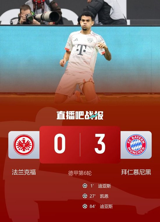 直播吧10月5日讯北京时间10月5日凌晨0:30,2025-26赛季德甲联赛第6轮,法兰克福坐镇德意志银行公园球场迎战拜仁。上半场格纳布里助攻路易斯-迪亚斯闪击,巴霍亚进球因堂安律手球在先被吹,凯恩接路易斯-迪亚斯助攻再下一城,拜仁暂2-0法兰克福;下半场路易斯-迪亚斯再进一球,最终拜仁3-0法兰克福,开赛至今全胜,4分领跑积分榜。